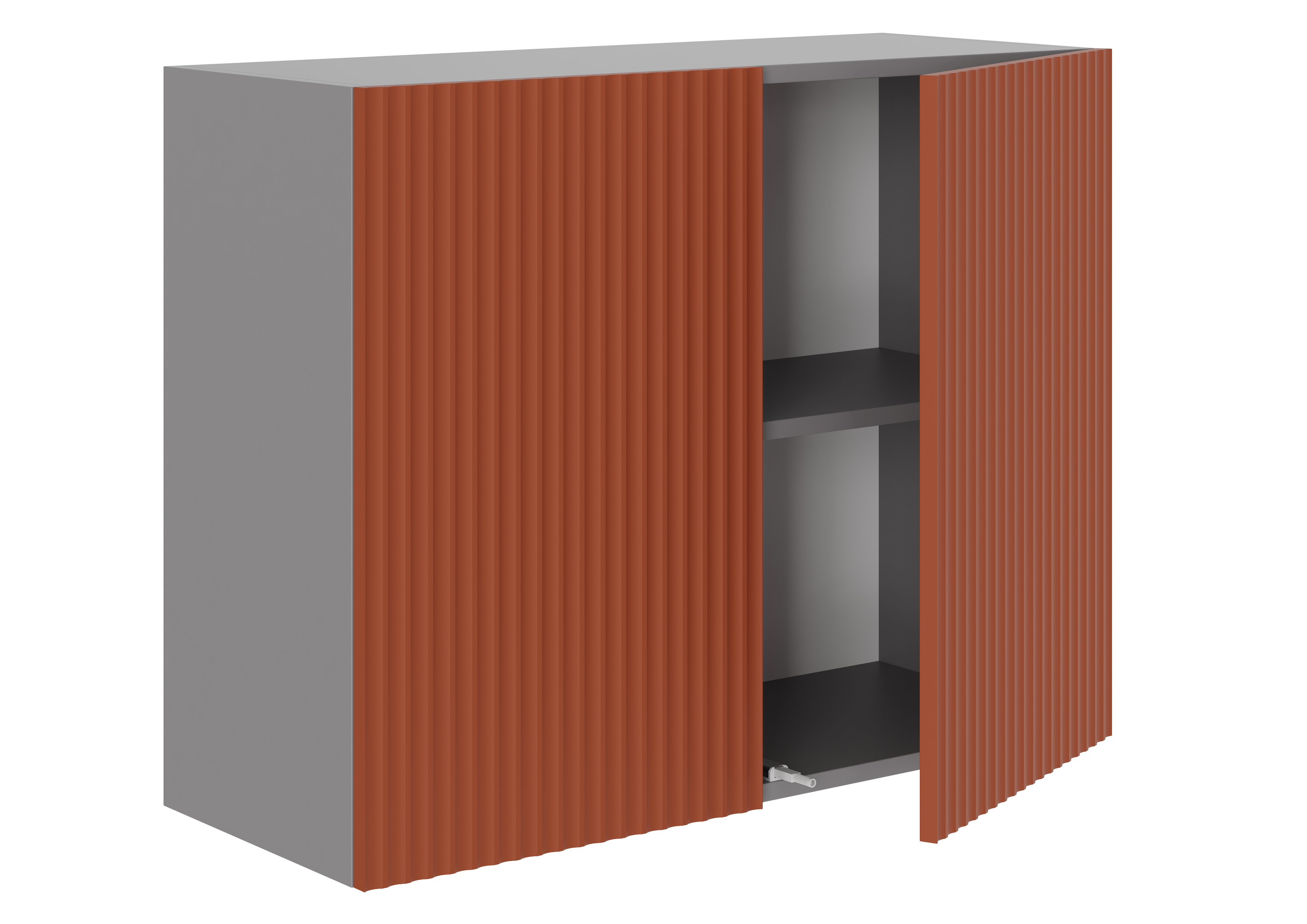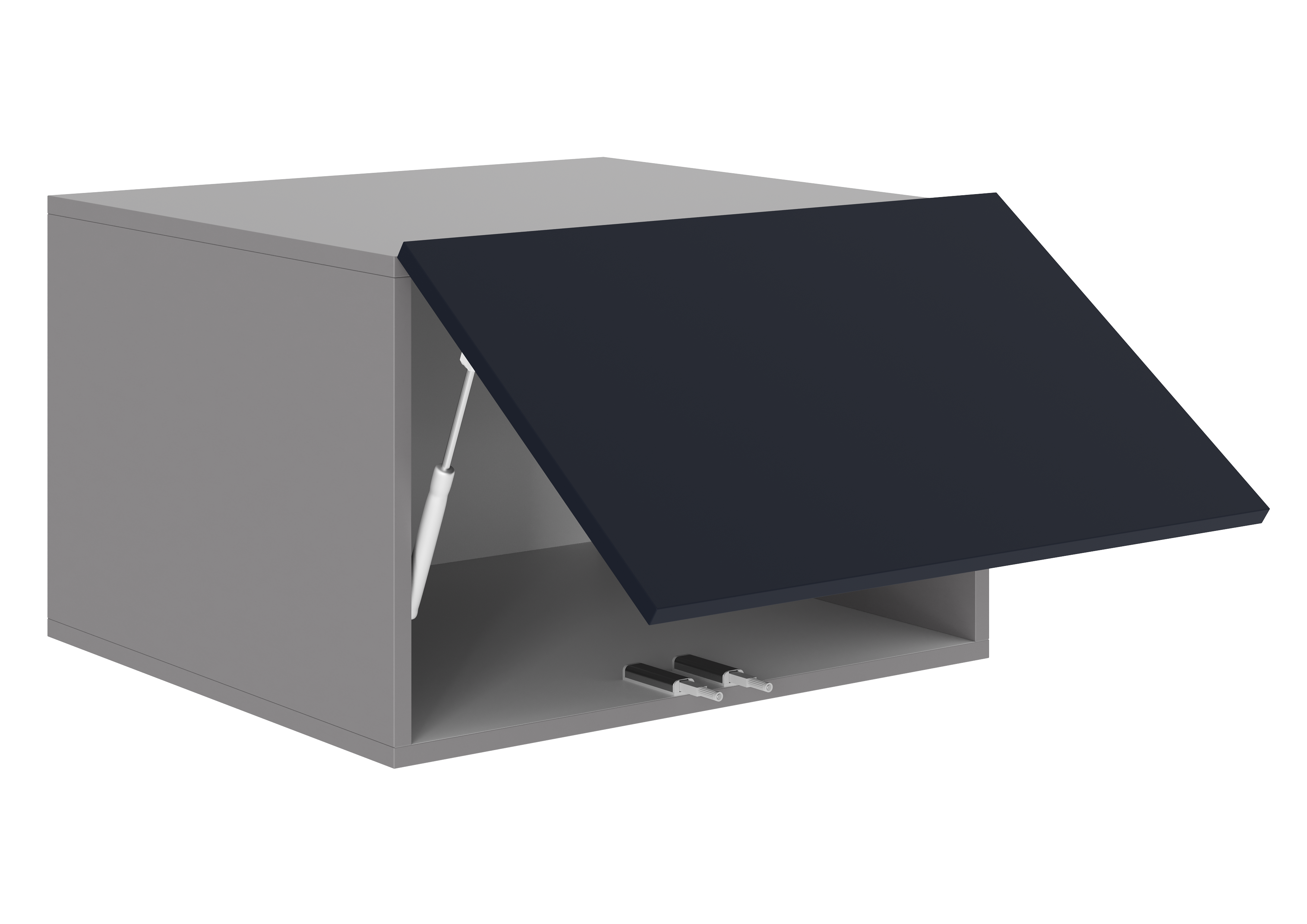 - Во всех верхних модулях ручки не предусмотрены, используются отталкиватели для дверей, шкафы комплектуются петлями без доводчика.
