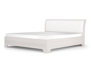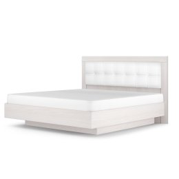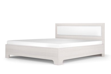 - Мягкое изголовье кровати декорировано экокожей.